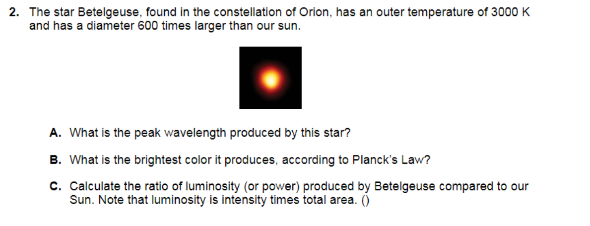Solved 2 The Star Betelgeuse Found In The Constellation Of Chegg Com